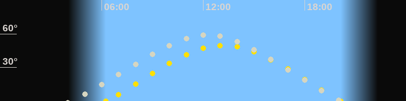| Höchster Stand (Kulmination) | 12:14 Uhr (h=59.5°) |