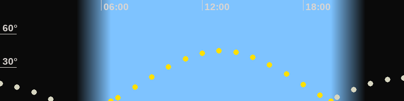 | Sonnenaufgang | 06:35 Uhr im Osten (αAz = 80°) |