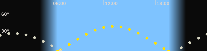 | Höchster Sonnenstand (Kulmination) | 13:07 Uhr (h = 43.9°) |