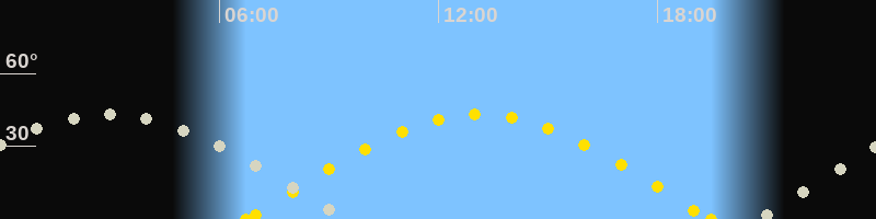 | Höchster Sonnenstand (Kulmination) | 13:06 Uhr (h = 43.1°) |