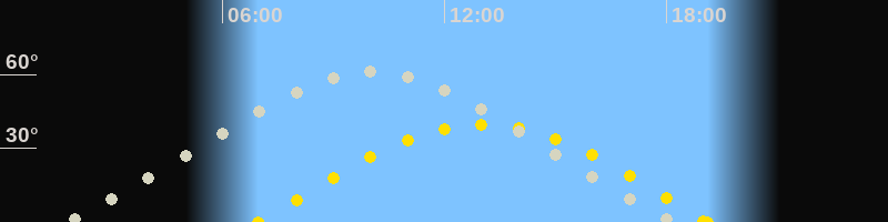 | Höchster Stand (Kulmination) | 10:01 Uhr (h=61.4°) |