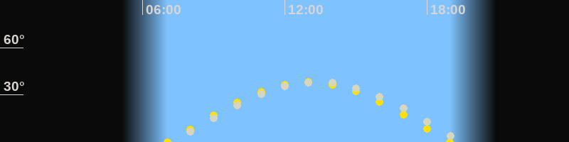 | Sonnenaufgang | 07:03 Uhr im Osten (αAz = 91°) |