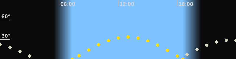 | Sonnenaufgang | 07:20 Uhr im Osten (αAz = 97.8°) |