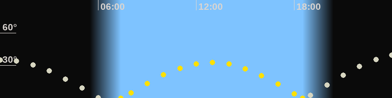 | Sonnenuntergang | 18:30 Uhr im Westen (αAz = 260.7°) |