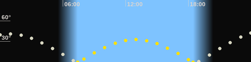 | Höchster Sonnenstand (Kulmination) | 12:57 Uhr (h = 32.7°) |