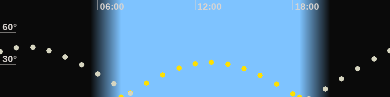 | Höchster Sonnenstand (Kulmination) | 12:57 Uhr (h = 32.3°) |