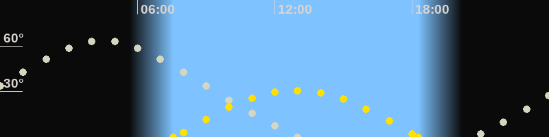 Höchster Stand (Kulmination)04:24 Uhr (h=63.4°)