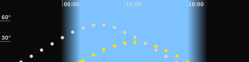 | Höchster Stand (Kulmination) | 09:32 Uhr (h=54.7°) |