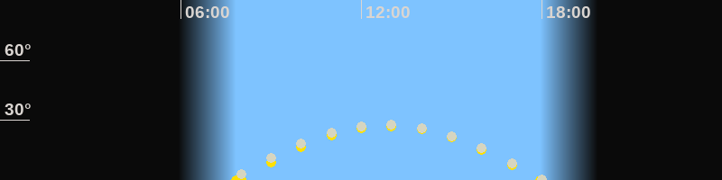 | Höchster Sonnenstand (Kulmination) | 12:54 Uhr (h = 27.2°) |