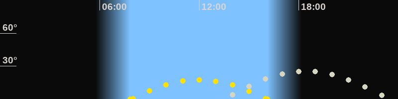 | Höchster Stand (Kulmination) | 18:20 Uhr (h=25.3°) |