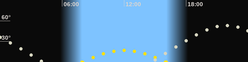 | Höchster Sonnenstand (Kulmination) | 12:00 Uhr (h = 16.9°) |