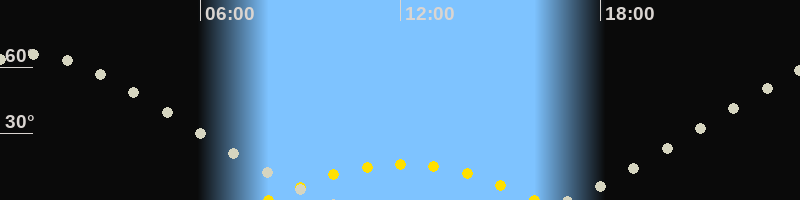 | Höchster Sonnenstand (Kulmination) | 12:02 Uhr (h = 16.4°) |