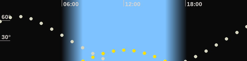| Höchster Sonnenstand (Kulmination) | 12:03 Uhr (h = 16.3°) |