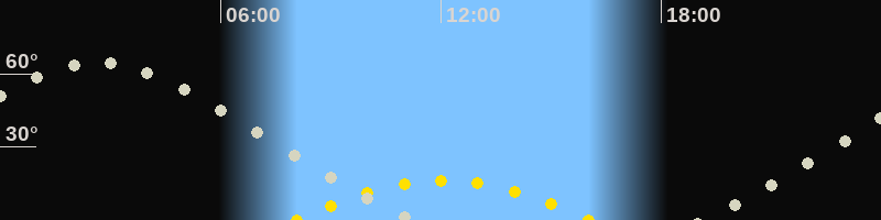 | Höchster Sonnenstand (Kulmination) | 12:03 Uhr (h = 16.2°) |