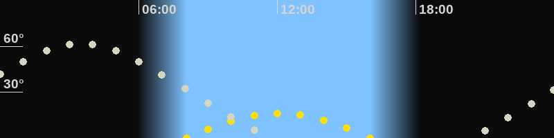 | Höchster Sonnenstand (Kulmination) | 12:04 Uhr (h = 16.1°) |