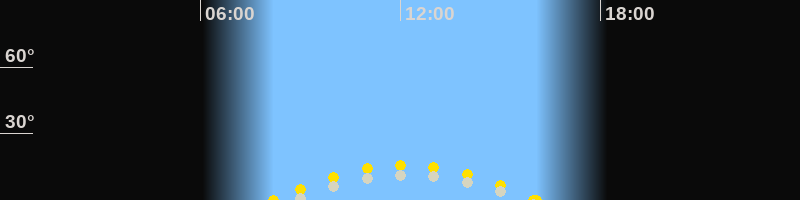 | Höchster Sonnenstand (Kulmination) | 12:09 Uhr (h = 15.8°) |