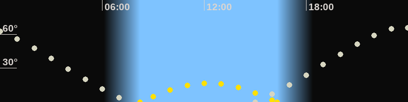 | Höchster Sonnenstand (Kulmination) | 12:15 Uhr (h = 16.7°) |