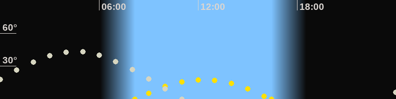 | Höchster Sonnenstand (Kulmination) | 12:18 Uhr (h = 17.7°) |