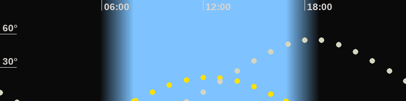| Sonnenaufgang | 07:53 Uhr im Südosten (αAz = 118.6°) |