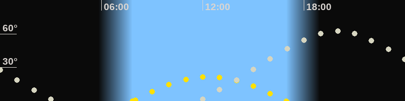 | Höchster Stand (Kulmination) | 19:54 Uhr (h=62.5°) |