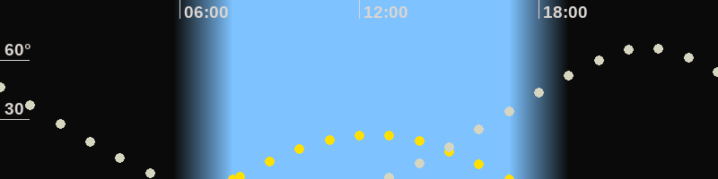 | Höchster Sonnenstand (Kulmination) | 12:23 Uhr (h = 22.4°) |