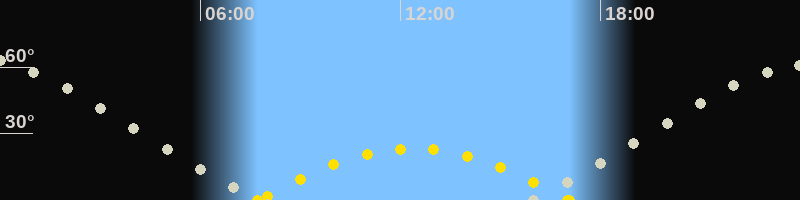 | Höchster Sonnenstand (Kulmination) | 12:24 Uhr (h = 23.2°) |
