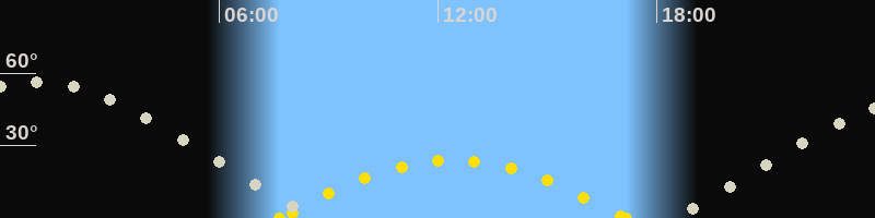 | Höchster Sonnenstand (Kulmination) | 12:24 Uhr (h = 23.9°) |