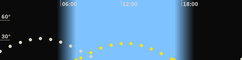 | Höchster Sonnenstand (Kulmination) | 12:24 Uhr (h = 25.1°) |