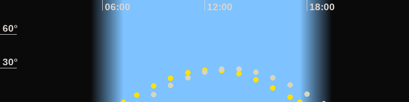 | Höchster Sonnenstand (Kulmination) | 12:23 Uhr (h = 28.6°) |