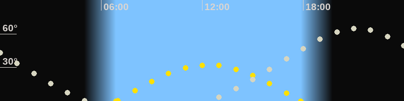 Höchster Sonnenstand (Kulmination)12:22 Uhr (h = 32.3°)