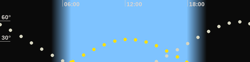Höchster Sonnenstand (Kulmination)12:21 Uhr (h = 33.1°)