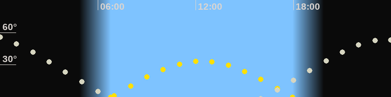Höchster Sonnenstand (Kulmination)12:21 Uhr (h = 33.5°)
