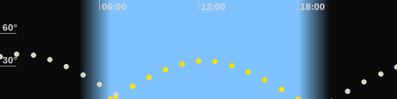 Höchster Sonnenstand (Kulmination)12:20 Uhr (h = 34.6°)