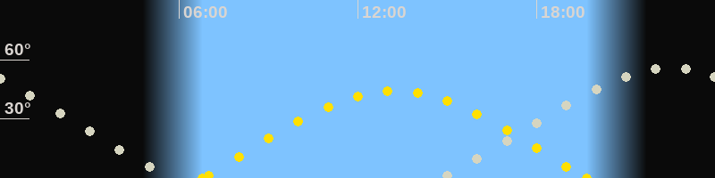 | Höchster Sonnenstand (Kulmination) | 13:14 Uhr (h = 44.1°) |
