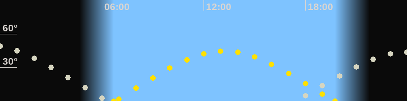 | Höchster Sonnenstand (Kulmination) | 13:13 Uhr (h = 44.8°) |