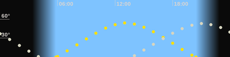 | Sonnenuntergang | 20:26 Uhr im Nordwesten (αAz = 294.5°) |