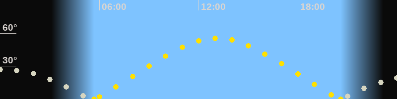 | Sonnenaufgang | 05:40 Uhr im Nordosten (αAz = 63.3°) |