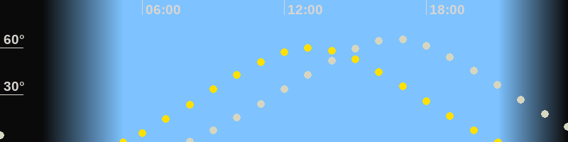 | Höchster Sonnenstand (Kulmination) | 13:07 Uhr (h = 60°) |