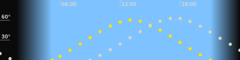 Höchster Sonnenstand (Kulmination)13:07 Uhr (h = 60.2°)