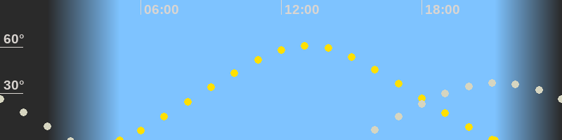 | Höchster Sonnenstand (Kulmination) | 13:07 Uhr (h = 61°) |