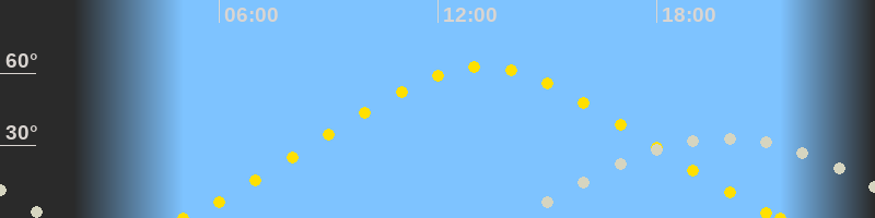 | Höchster Sonnenstand (Kulmination) | 13:13 Uhr (h = 62.6°) |