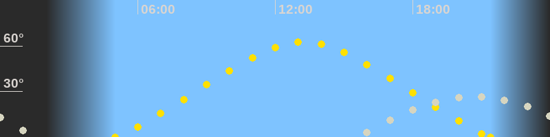 | Höchster Sonnenstand (Kulmination) | 13:13 Uhr (h = 62.6°) |
