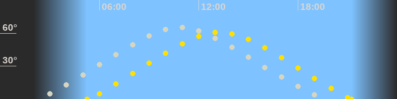 | Höchster Sonnenstand (Kulmination) | 13:16 Uhr (h = 60.9°) |
