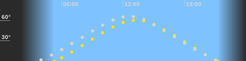| Höchster Sonnenstand (Kulmination) | 13:16 Uhr (h = 60.5°) |