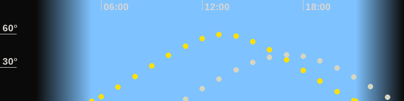 | Höchster Sonnenstand (Kulmination) | 13:16 Uhr (h = 59.4°) |