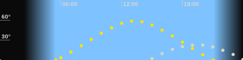 | Höchster Sonnenstand (Kulmination) | 13:16 Uhr (h = 58.8°) |