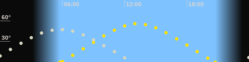 | Höchster Sonnenstand (Kulmination) | 13:16 Uhr (h = 55.8°) |