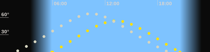 | Höchster Stand (Kulmination) | 10:23 Uhr (h=66.6°) |