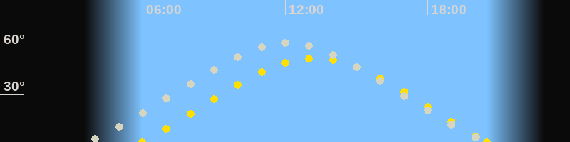Höchster Stand (Kulmination)12:04 Uhr (h=63.2°)