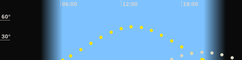 | Sonnenaufgang | 06:13 Uhr im Osten (αAz = 71.7°) |